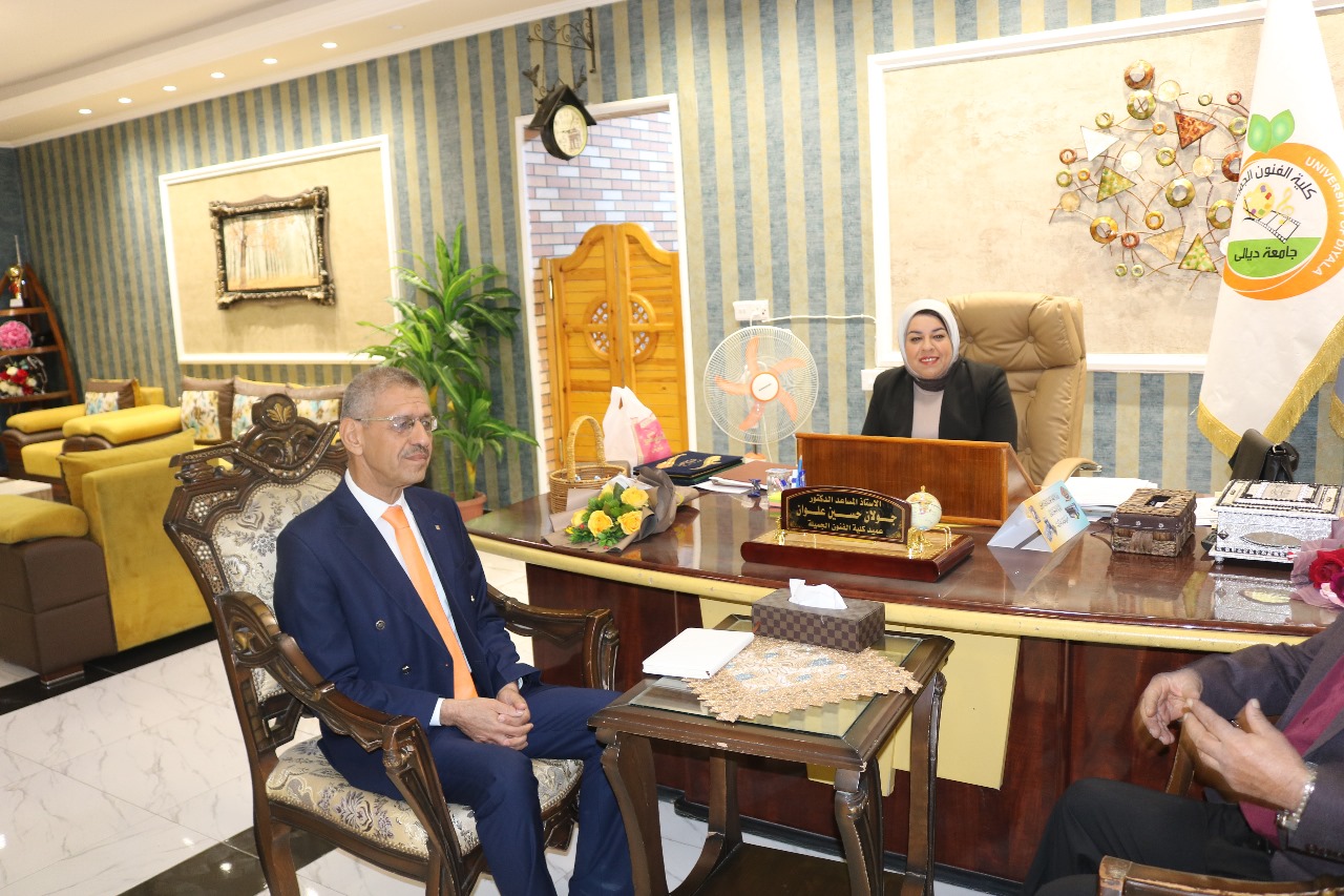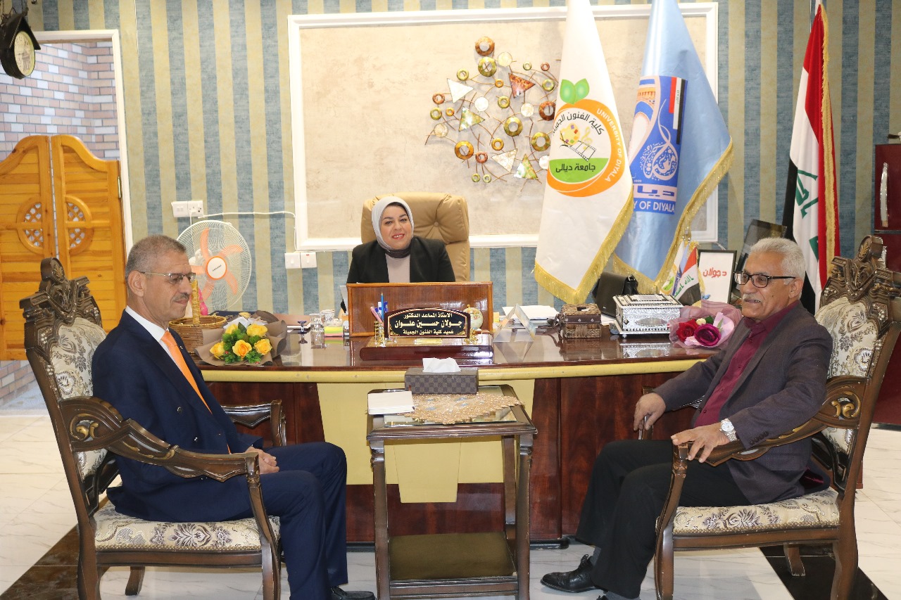 استقبلت الأستاذ المساعد الدكتور جولان حسين علوان، عميد كلية الفنون الجميلة في جامعة ديالى، فريق مسرحية «لحظة» في مكتبها هذا اليوم الأحد الموافق 9 تشرين الثاني 2025، تقديراً للجهود المتميزة التي بذلوها في عرضهم المسرحي في جمهورية باكستان، والذي حظي بإشادات واسعة على المستوى الدولي. وخلال الاحتفاء، قامت عميدة الكلية بمنح الفريق درع الكلية والشهادات التقديرية تكريماً للإبداع والتمثيل المشرف للأداء الفني العراقي، معربةً عن فخرها بما حققه الطلبة، ومشيدة بالدور الكبير للفريق في تمثيل الكلية والجامعة بشكل متميز على الساحة الأكاديمية والثقافية. وأكدت أن هذه الإنجازات تعكس مستوى الاحترافية والجهود المخلصة للطلبة والطاقم الفني، وتبرز صورة مشرفة لإمكانات الكلية في دعم الإبداع الفني. وقد ترأس الوفد المشارك في العرض المسرحي المدرس المساعد محمد خالص إبراهيم، فيما ضم الفريق الطلاب التالي أسماؤهم: